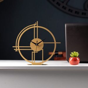 Gold Tabletop Minimalist Lineal Circle Metal Slient Clock, Diameter 9.8 Inches/25 cm Unique Desk clocks, Housewarming Gift, Her & His Gift Seller details