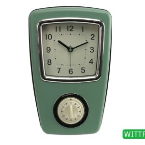 “New stylish retro kitchen clock Bauhaus design in original packaging wall clock with egg timer kitchen clock 22 cm quartz NEW/NOS never hung on the wall Germany” has been added to your cart.