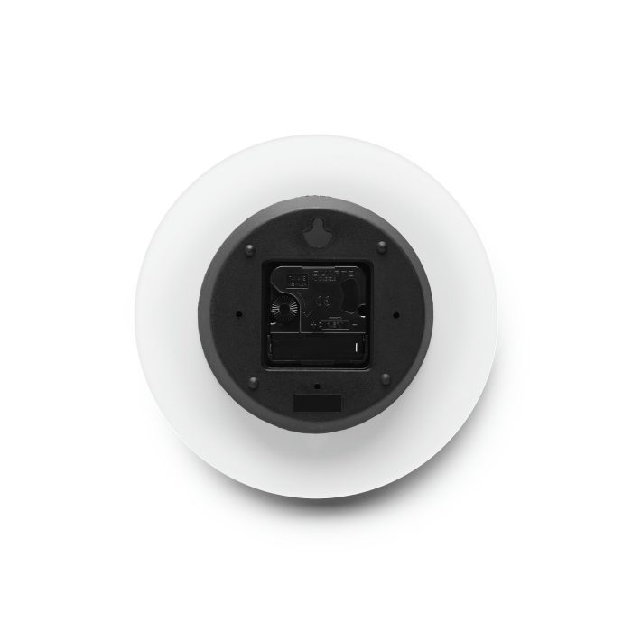 These clocks come in two shapes (round and square) and two sizes. Each clock has a keyhole at the back for easy hanging on a wall. They’re made from an acrylic material that looks like glass but is more durable and sturdy.
