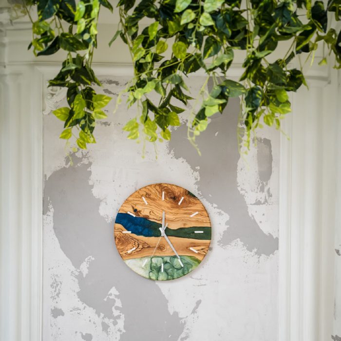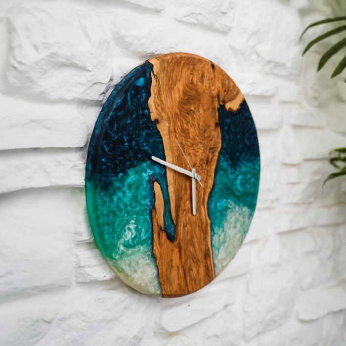 Experience the craftsmanship of time with our Custom Resin Wall Clock, meticulously crafted in Turkey – the Epoxy & Olive Wood Wall Clock!