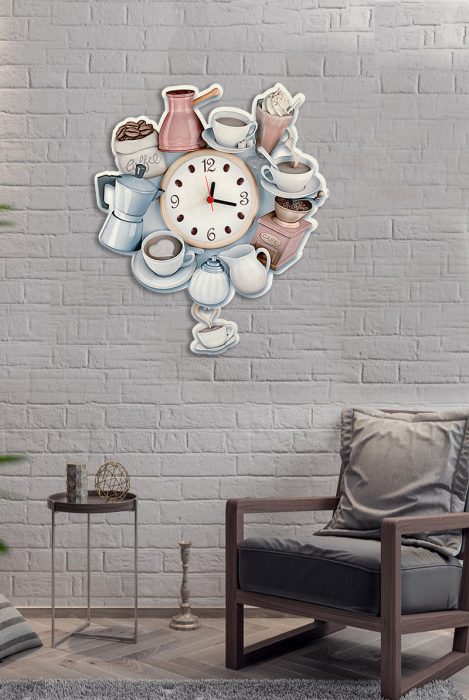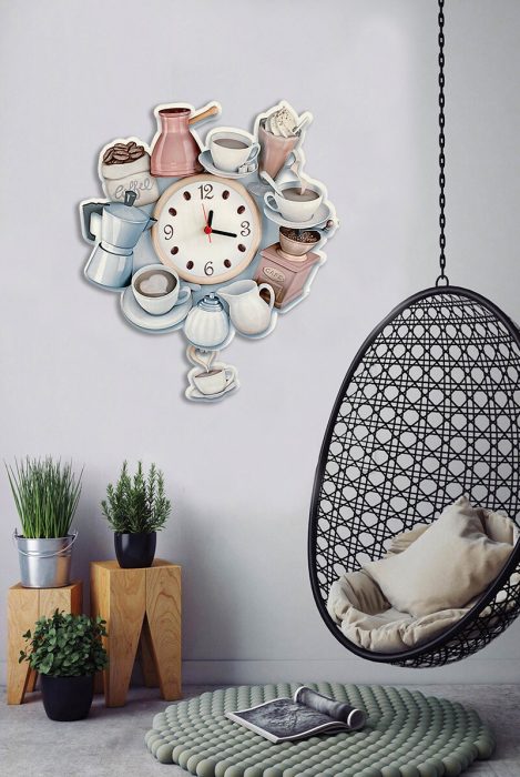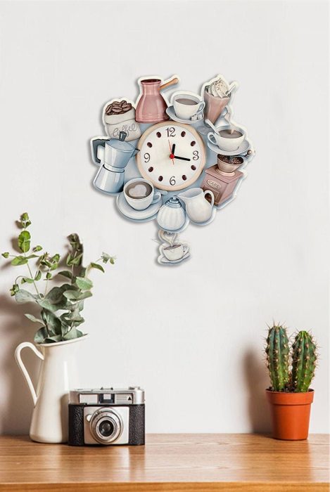 Our coffee world swinging clock will bring a vibrant aura and color to your kitchen with its various coffee cups and tea pots.