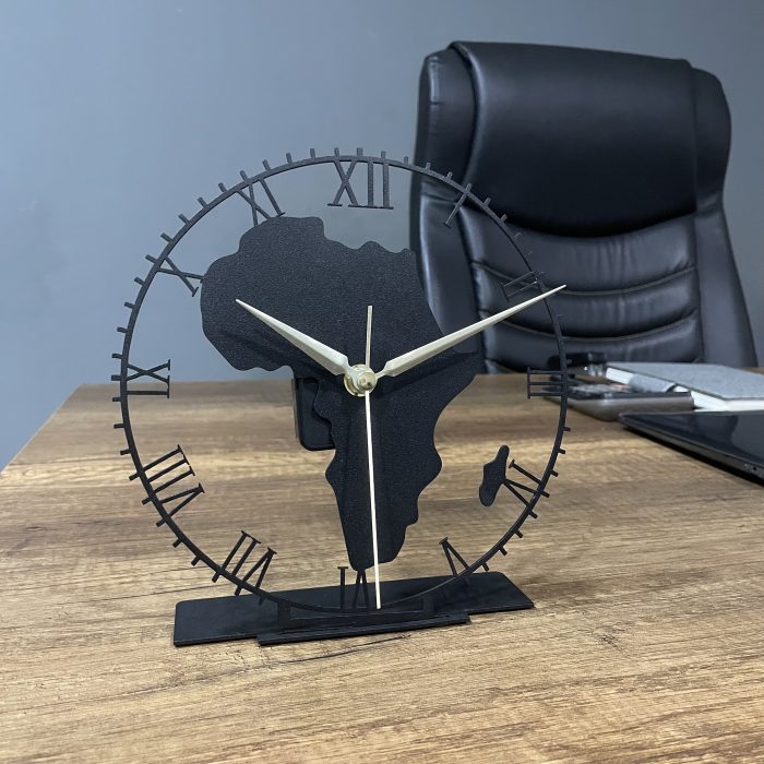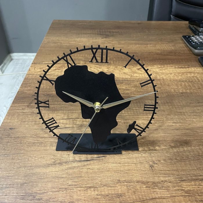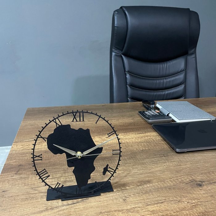 Metal Africa Map Tabletop Clock, Black 3D Table Clock,Africa Home Decor,Decorative Metal Clock,Home Office Decor,Modern Tabletop Metal Clock