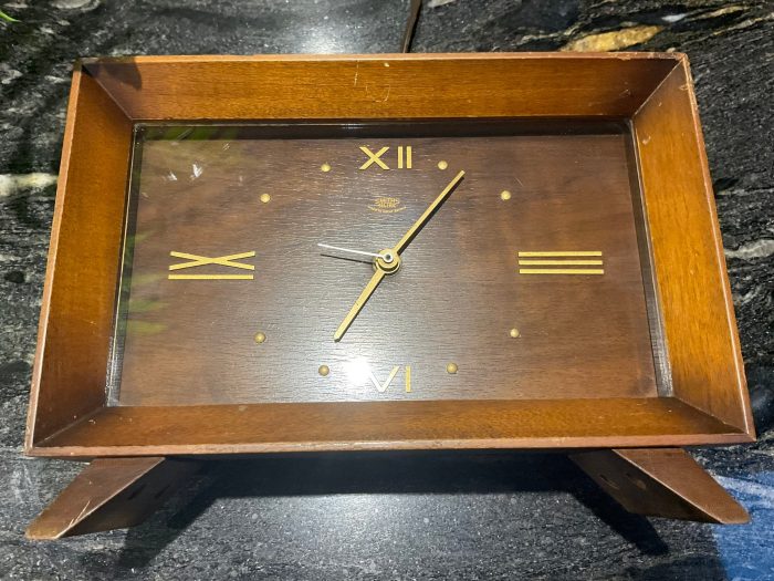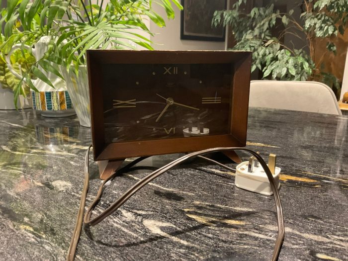 Mid Century Retro Smiths SecTric Teak Mantle Clock – Model name Lynside – Main’s power 1950’s / 1960’s