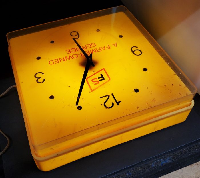 Vintage Feed Service Farm Advertising Electric Hanging Wall Clock, 16′ x 16″ x 5